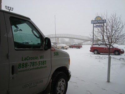 9:30 a.m. Bum a ride from a friend to the Go Rochester Direct shuttle pick-up site. Winter storm brewing, up to six inches of snow expected along the highway.
