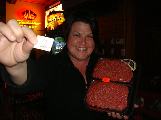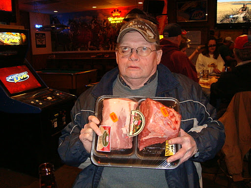 | Another proud meat raffle winner. Judging from the black eye, he may have had to fight someone for this meat. Photo by Charish Badzinski. |