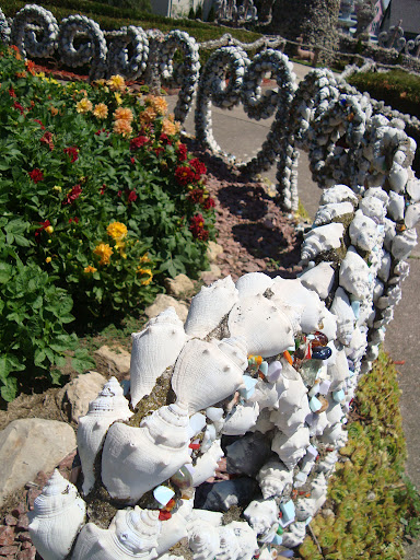 | Even the fences that trim the flowerbeds are embellished with glass and shells. Photo by Charish Badzinski. |