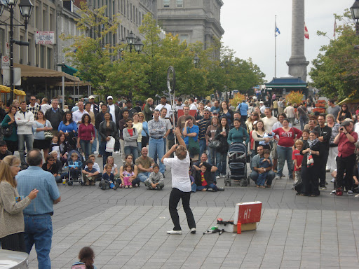 | A performer wows the gathering crowd at Place Jacque-Cartier in Montreal. Photo by Charish Badzinski. |