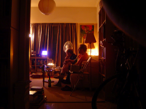 | Enjoying avgotaraho and American Jazz in the low light of my dinner host’s apartment in Athens, Greece. Photo by Charish Badzinski. |