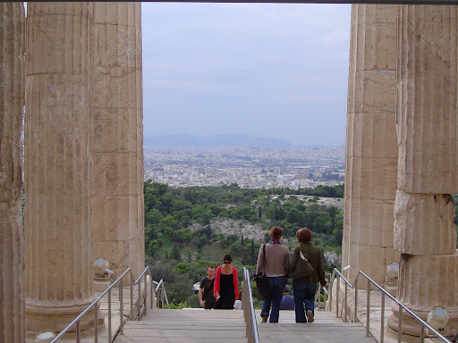 | Tourists make their way through one of the many ancient structures of the Acropolis. Photo by Charish Badzinski. |