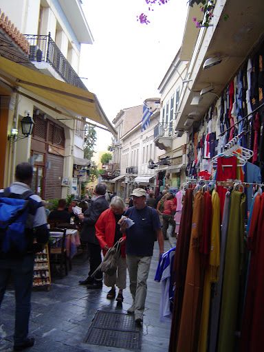 | The winding streets of the Plaka are teeming with tourists. It’s a great place to buy souvenirs, or people watch. Photo by Charish Badzinski. |