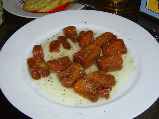 | Avgotaraho, or cured fish roe sometimes called the “poor man’s caviar,” is dressed here by my dinner host in lemon juice and fresh cracked pepper. Photo by Charish Badzinski. |