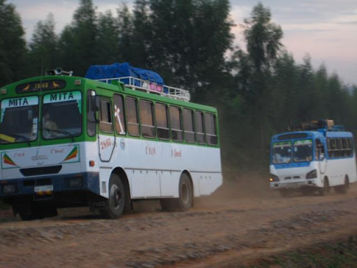 | Two public buses make their journeys on dusty roads. Contributed Photo. |