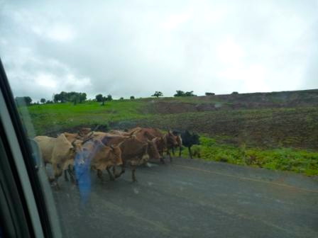 | Buses and trucks share the road with cows, oxen, donkeys, sheep, and goats. Contributed Photo. |