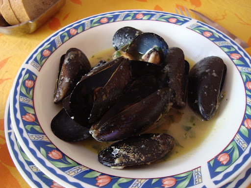 | Mussels in white wine and herbs with breadcrumbs, served in Zadar, Croatia. Photo by Charish Badzinski. |