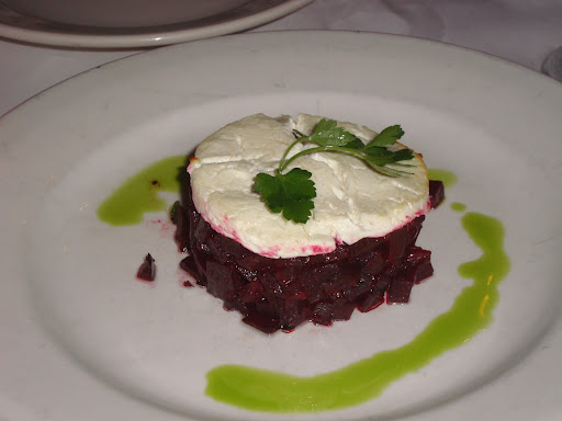 | A starter of beet salad with goat cheese at Les Halles. Photo by Charish Badzinski. |