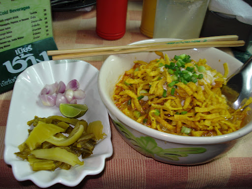 | Unforgettable khao soi in Chiang Mai, Thailand, served with pickled vegetables, lime and fresh shallots. Photo by Charish Badzinski. |