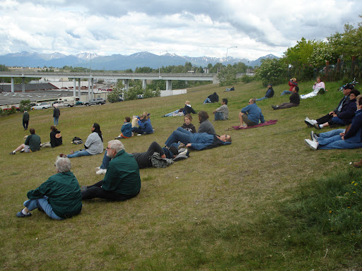 | Locals gather to watch the July 4th fireworks in Anchorage. Photo by Charish Badzinski. |