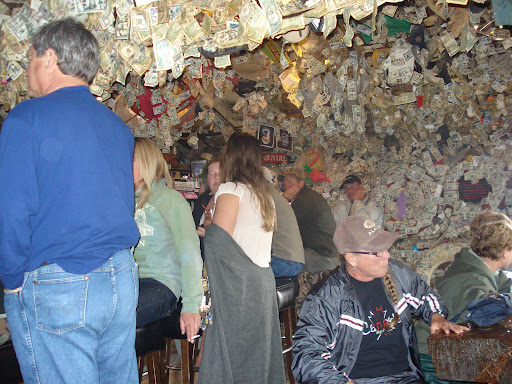 | The inside of the Salty Dawg in Homer, Alaska is covered with names, notes and dollars. Photo by Charish Badzinski. |