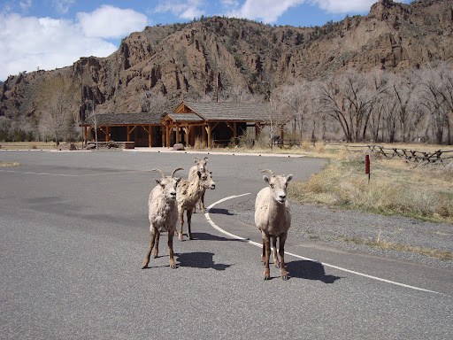 | Bighorn sheep gather along the side of the highway in the Shoshone National Forest. Photo by Charish Badzinski. |