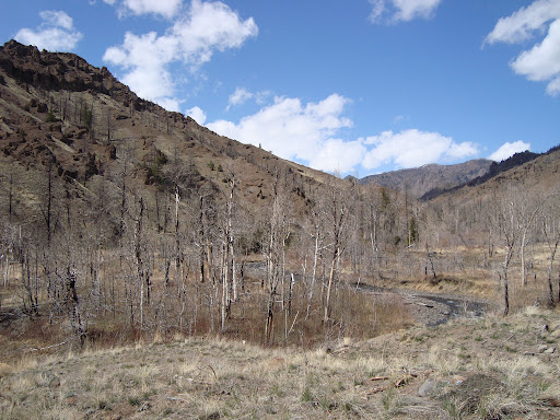 Not all areas affected by the wildfire will be replanted, says Brey. That’s because the Forest Service focuses not only on reforestation, but conservation of important wildlife habitat, as well. He points to a riparian zone—a moist area on the banks of the North Fork of the Shoshone River, where grass growth is lush, and aspen, willow and cottonwood trees are starting to grow among the singed trees still standing after the fire.
