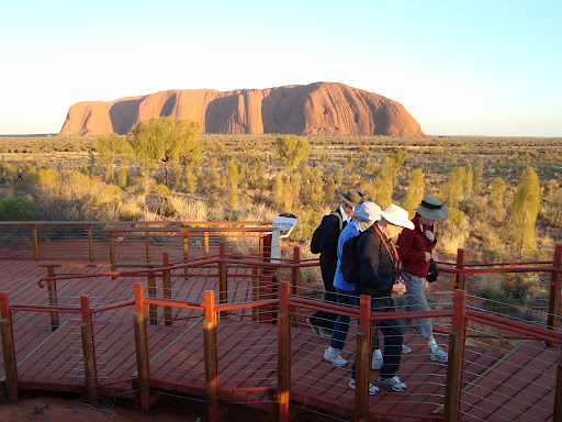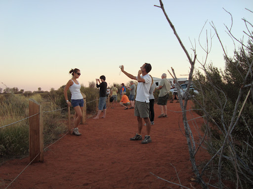 | Tourists gather at sunrise to watch the changing light on Australia’s Uluru. Photo by Charish Badzinski. |