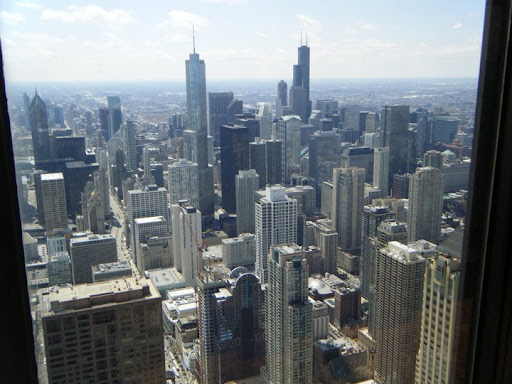 | Even the view from the ladies room is impressive. It’s located one floor above The Signature Room dining area in the John Hancock building, Chicago. Photo by Nora Aune. |