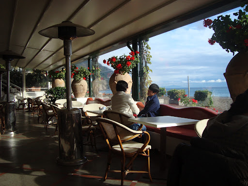 | Sipping wine by the water in Positano Italy. Photo by Charish Badzinski. |