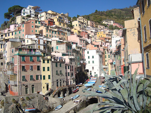 | Riomaggiore in the Cinque Terre, Italy where the houses seem to want to collapse upon one another. Photo by Charish Badzinski. |