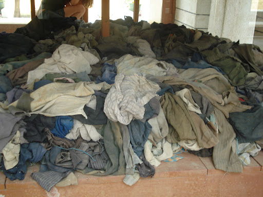 | Clothing from the victims at Choeung Ek. Many of the bodies unearthed in mass graves are nude. Photo by Charish Badzinski. |