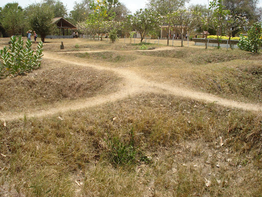 | Walking paths pass around mass graves at Choeung Ek in Cambodia. Photo by Charish Badzinski. |
