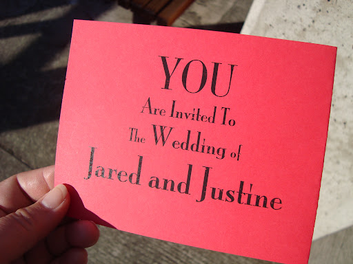 | The wedding invite, handed out to commuters on the ferry. Photo by Charish Badzinski. |