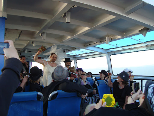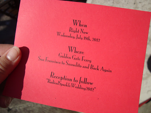 For some of us, that chance came yesterday, at the Radical Sparkle ReWedding #3, a gender bender flash mob event that took place on the San Francisco ferry to Sausalito.