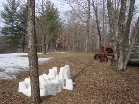 In late April just as the winter weather broke, my nieces built a castle of snow, the sun melting its turrets, everyone strangely comfortable in flip-flops and t-shirts.