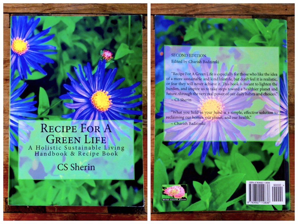 In January of 2016 I published a draft publication, A Green Lifestyle Recipe Book, under my own indie label, Wild Clover Press. Then, from collaboration with my editor (the Rollerbag Goddess herself), the book grew into a 488 page paperback called: Recipe For A Green Life: A Holistic Sustainable Living Handbook & Recipe Book. The second edition was released in May of 2018.