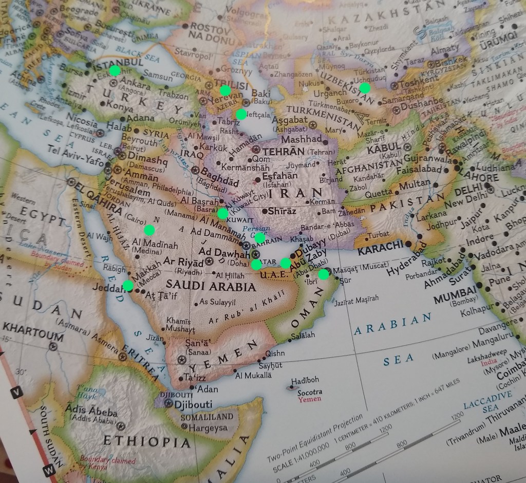 There are problems in the Middle East which I’ve never completely understood, and daresay I never will. They began long before I was born, continued throughout my lifetime, and will probably be avenged long after I’m gone. But I wanted to travel there, to tell the stories of kindness and hospitality that I know exist, which so rarely reach our ears in the West. I wanted to journey to the places so few of us go, to perhaps wedge open the door for others, if they felt similarly curious and intrepid. The plan: to visit a cluster of countries in that part of the globe including UAE, Oman, Bahrain, Qatar, Georgia, Azerbaijan, Uzbekistan and Saudi Arabia. Then, I’d objectively observe and report back, unlike the influencers whose trips are bankrolled by governments. I wanted to experience, first hand, what it was like to be a woman in this part of the world, a Western woman, a female traveler. At more than 50 countries, I figured I had earned a self-directed master’s degree in travel at this point, and now was the time to take on what could amount to my most challenging journey.