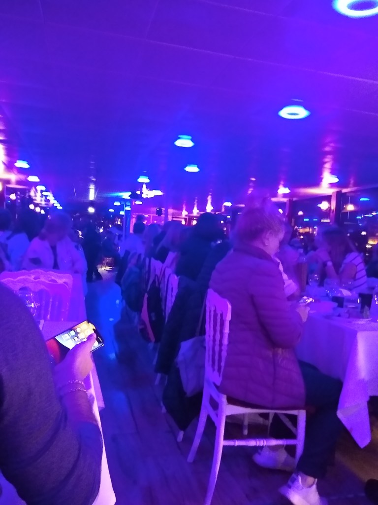 We wait on shore, watching the garishly-lit boats bobbing on the choppy water. One comes to the dock, and as we board, a tourist who is bent over and holding her stomach glances warily in our direction, then covers her face with her hand. We are ushered inside, to the last table in the room. The party has happened without us, and the performers are already sweating through their costumes. They prance to the front of the room with great earnestness, but I’m seated facing the opposite direction, and they’re 20 tables or more behind me, so even if I crane my neck there’s little chance of seeing them.