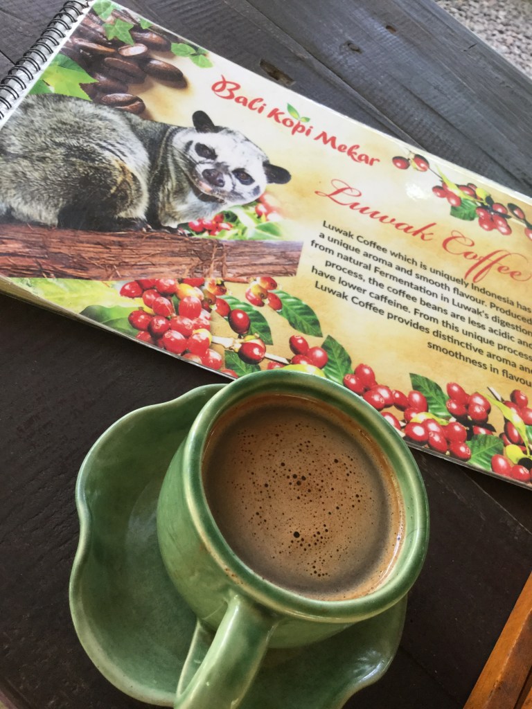 As we continued on, my driver asked if I’d like to stop at a place where I could try kopi luwak, coffee made from beans which are first consumed and pooped out by civets. I was up for anything, even a predictably tourist-trappy pause (though in retrospect and with more understanding of how civets are treated, not sure I’d make this choice again).