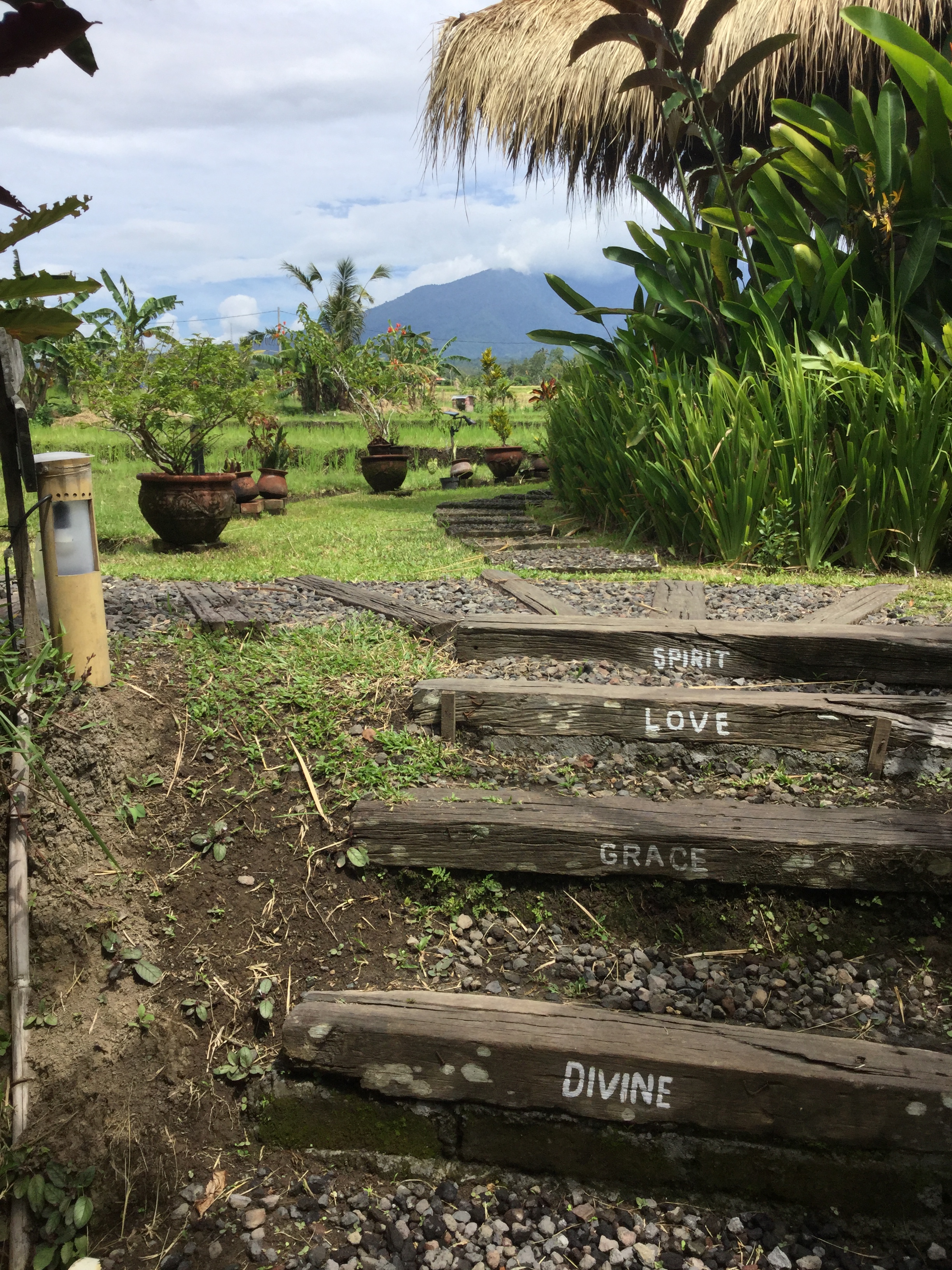 I’ve never stayed at an Ashram so I have no point of reference except Eat, Pray, Love, but organizers say Bali Silent Retreat operates similarly to an Ashram, where retreatants are responsible for keeping their own spaces and dishes clean. The retreat center is non-denominational, non-dogmatic and welcoming of retreatants with differing faith traditions or none at all as the case may be. The center is driven by ecological and sustainable practices, with massive amounts of food grown on the property, dragonfruit and rice and greens, all of which is served to retreatants. The property is solar powered, so there are no outlets in the rooms for charging phones and other devices (retreatants are issued a locker and key and encouraged to squirrel away their devices to achieve the greatest benefits of the retreat). Attendees are issued a cotton kimono, towel and washcloth, a journal and pen, eco-friendly soap and fresh bedding. You are expected to make your own bed, clean your own room as needed, and strip the bedding when it’s time to go.