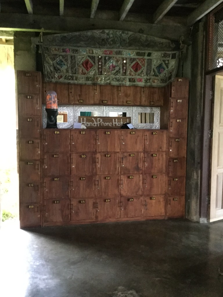 I inquired at the main office, and they had a deluxe single room available for the remainder of my stay (current rate: $75/night, plus food and activities day pass and fees). In the pauper’s room, I’d had a bed, nightstand and wooden chair. In the new room I had many times more space with a sitting area, a meditation mat, a comfy chair and footstool, a desk, a big shower and bathroom, my own water jug and a full-length mirror. In the larger room ginger tea was delivered every morning before the gong rang for yoga and meditation. No one could hear me pee aside from the one retreatant in the same duplex. Though I’d booked the room only an hour before, there was already a sign over the door with my name on it. It felt comparatively luxurious, though I must admit I missed having a fourth wall open to the jungle and the breezes it had afforded me.