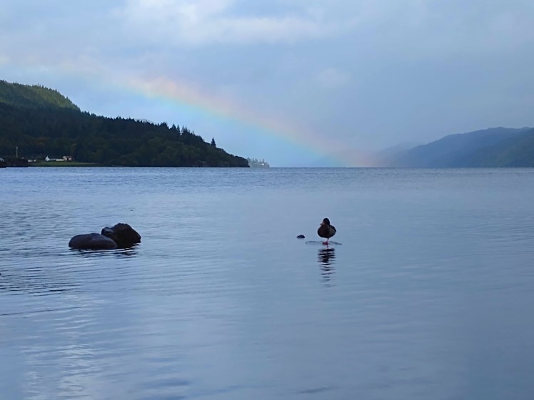 The Bruja and I dip our hands into Loch Ness, marveling at the mystical tone of this journey for two women who came of age in small town Minnesota. We know Nessie isn’t here, but we embrace the magic of possibility and scan the lake’s watery mirror. She never shows, so I snap photos of a single mallard in the loch with a rainbow behind him, which frankly seems even more magical than a supersized serpent.