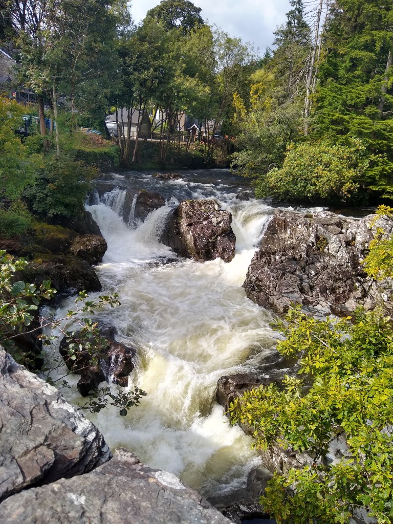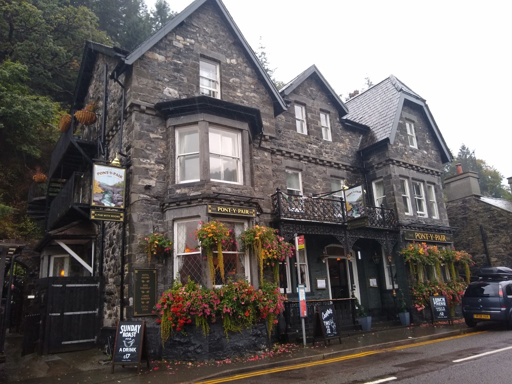 From our rooms at the Pont-y-Pair Inn in Betws-y-Coed, Wales, The Bruja and I can hear the rushing river and see the historic Pont-y-Pair bridge, which means “Bridge of the Cauldron.”