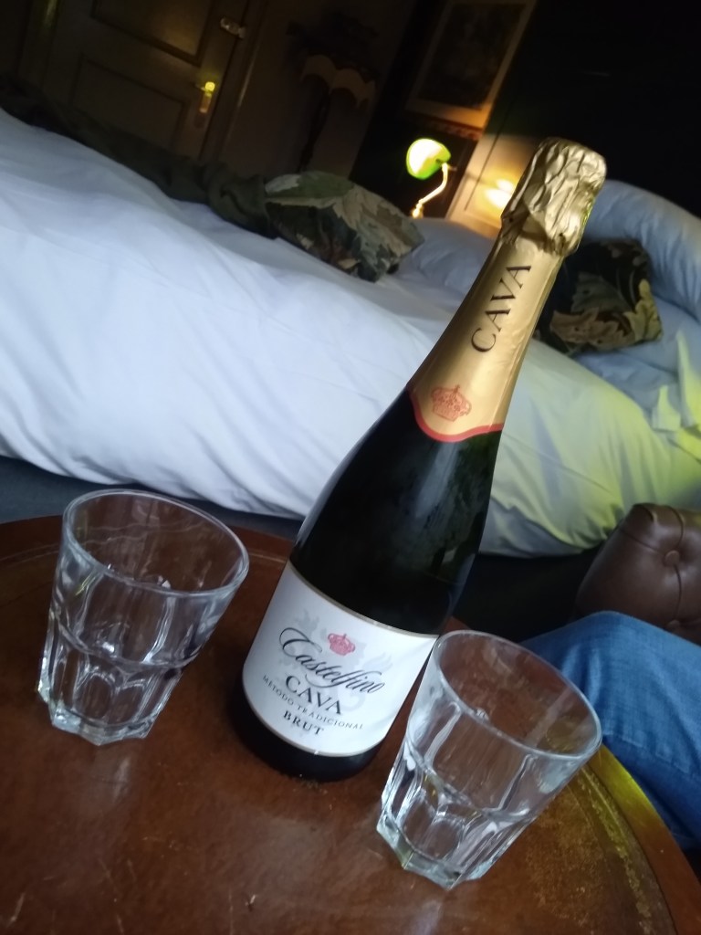 Another member of The Coven, The Manifestress, inspired me to create a vision board 16 years ago to which I glued the intention, “It’s time to travel the world.” The vision board had been spookily effective; to be honest, sometimes our power scares us too. Back then I’d only been to a handful of countries, and Wales is the unfathomable manifestation of travel to 60 countries for me. The Bruja and I pop a bottle of our chosen potion to celebrate the moment: convenience store cava.